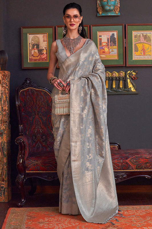 Looking for sheer elegance and exquisiteness? Look no further than our Kashmiri Model Organza Silk...