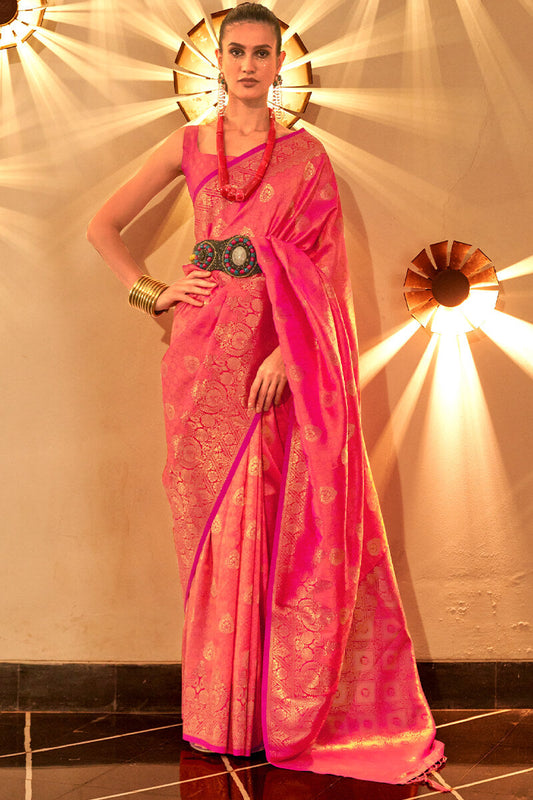 SAREE SPECIFICATIONS:Fabric: Kashmiri Modal SilkColour: Pink Work Type: Zari WeavingBLOUSE SPECIFICATION:Fabric: Kashmiri Modal SilkColour: Pink Work Type:...
