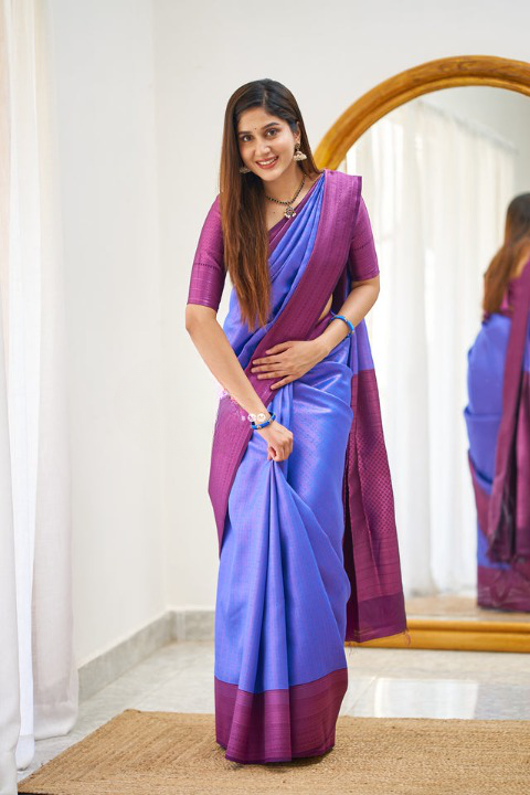 DESCRIPTION Elevate your ethnic wardrobe with our Soft Banarasi Silk Saree With Evanescent Blouse Piece!...