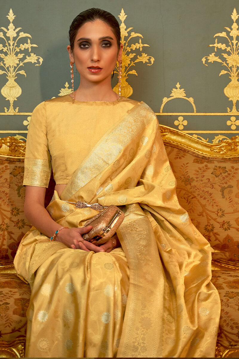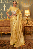 Adorning Yellow Soft Banarasi Silk Saree With Charming Blouse Piece