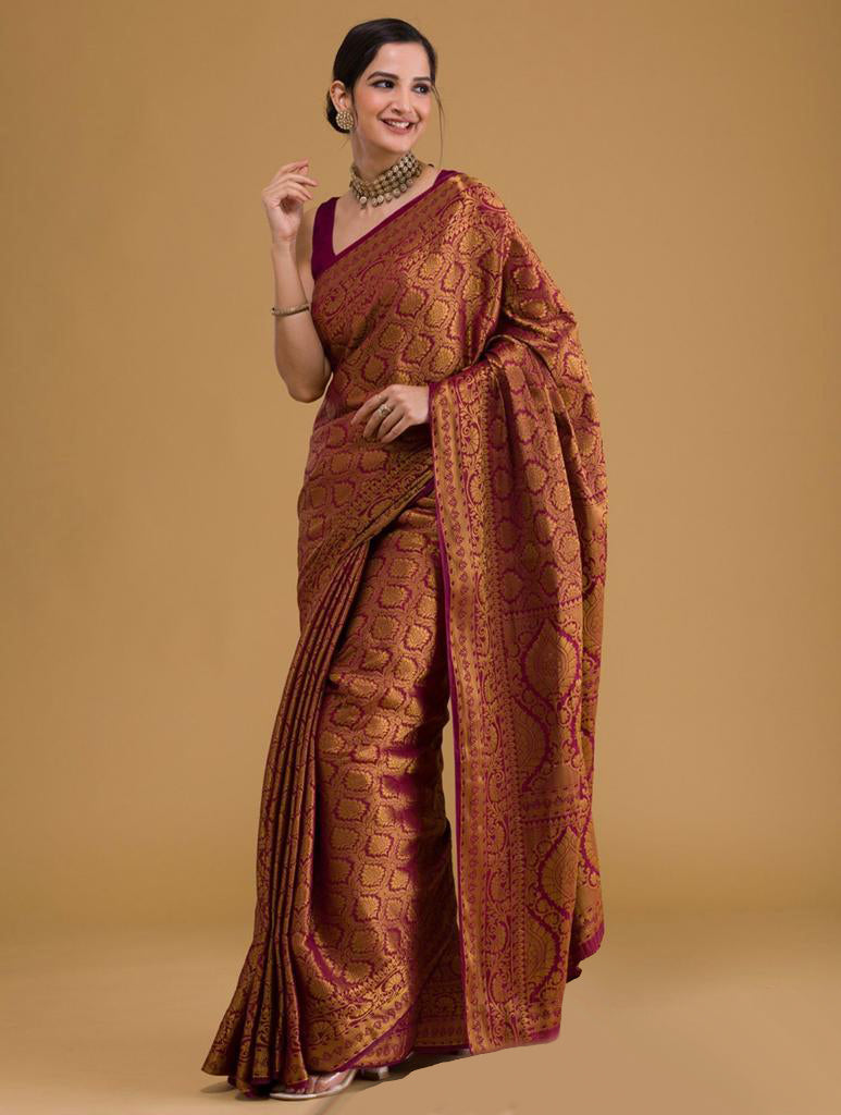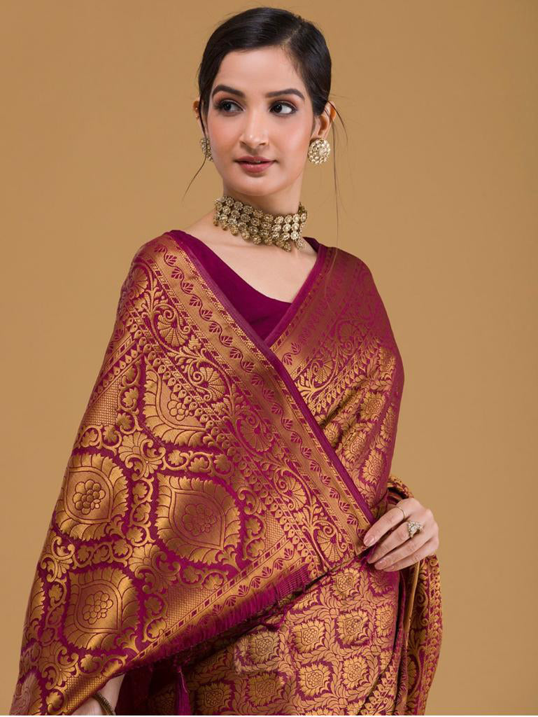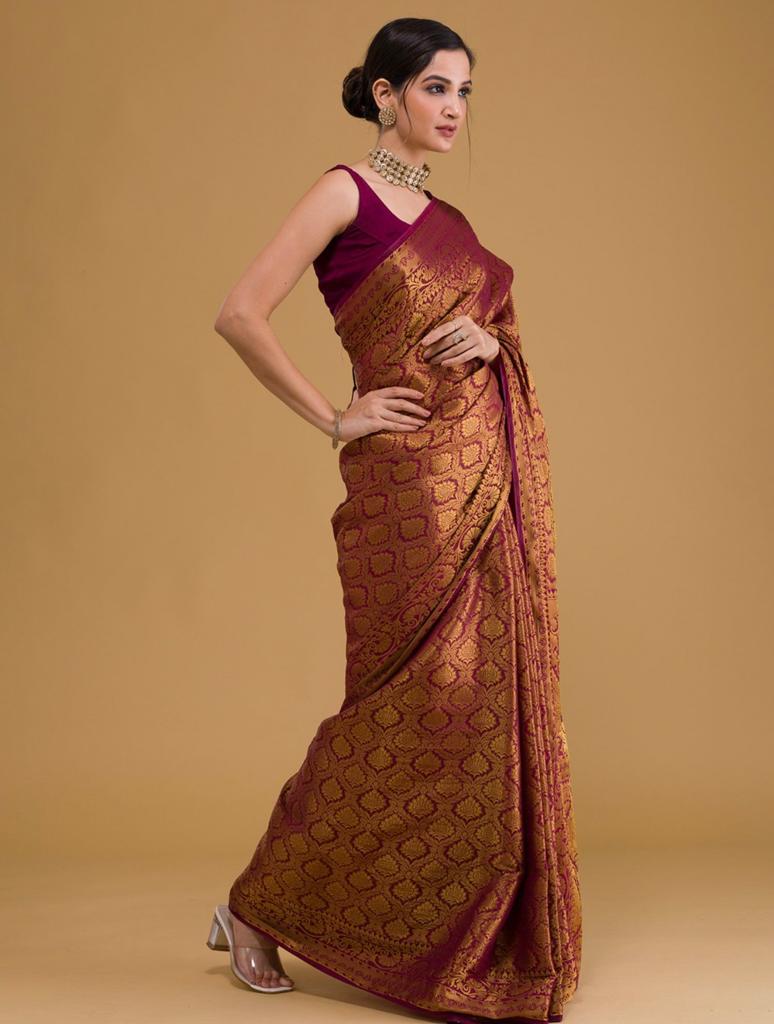 Elaborate Red Soft Silk Saree With Snappy Blouse Piece