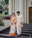 Elevate your ethnic wardrobe with the mesmerizing Flameboyant Off White Soft Silk Saree With Fairytale Blouse Piece. Crafted with utmost care, this saree exudes elegance and grace. The soft silk fabric gently drapes around you, ensuring a comfortable and snug fit.