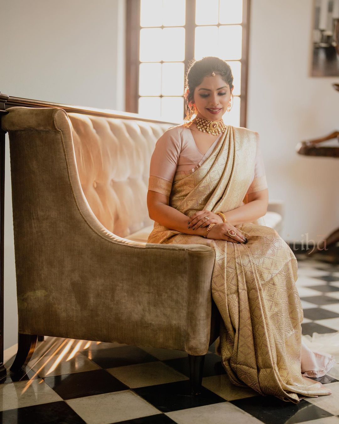Glittering Beige Soft Silk Saree With Exuberant Blouse Piece