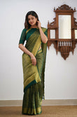 Gossamer Dark Green Soft Silk Saree With Diaphanous Blouse Piece