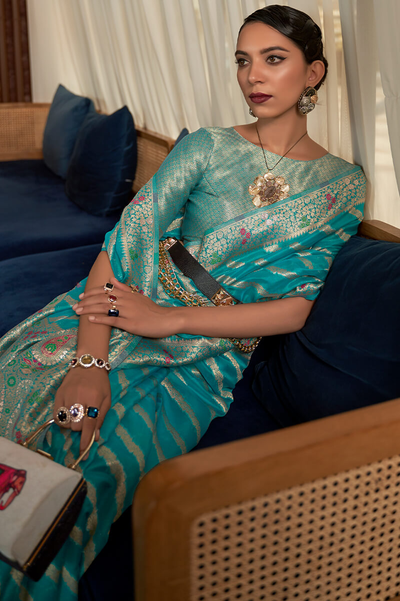 Imaginative Firozi Organza Silk Saree With Staggering Blouse Piece