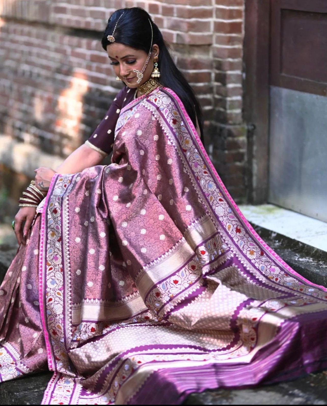Imbrication Purple Soft Silk Saree With Woebegone Blouse Piece
