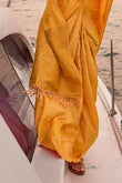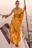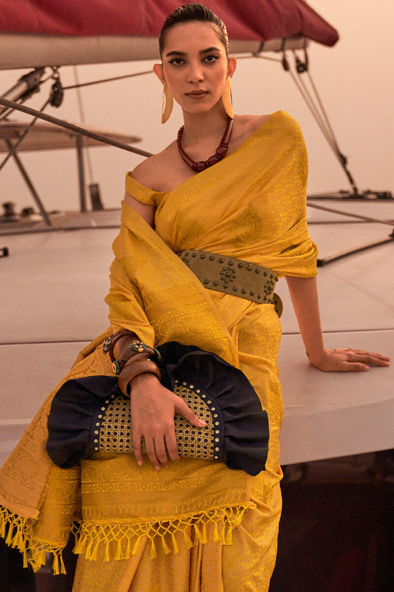 Inspiring Yellow Soft Banarasi Silk Saree With Assemblage Blouse Piece