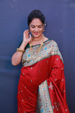 Intricate Red Paithani Silk Saree With Classy Blouse Piece