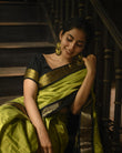 LIGHT GREEN & BLACK COMBINATION PURE SOFT SEMI SILK SAREE WITH ATTRACTIVE BLOUSE PIECE