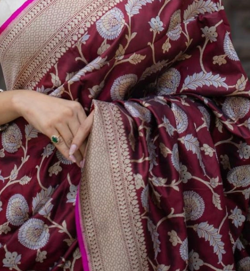 Celebrate the beauty of femininity with our Magnificat Wine Soft Silk Saree with Panoply Blouse Piece! Crafted with utmost care and attention to detail, this saree is a true masterpiece. The smooth and silky texture of the soft silk fabric feels luxurious against your skin, while the gorgeous wine color exudes elegance.