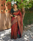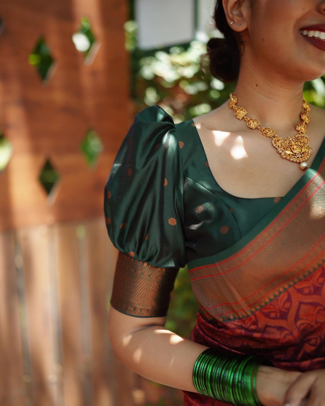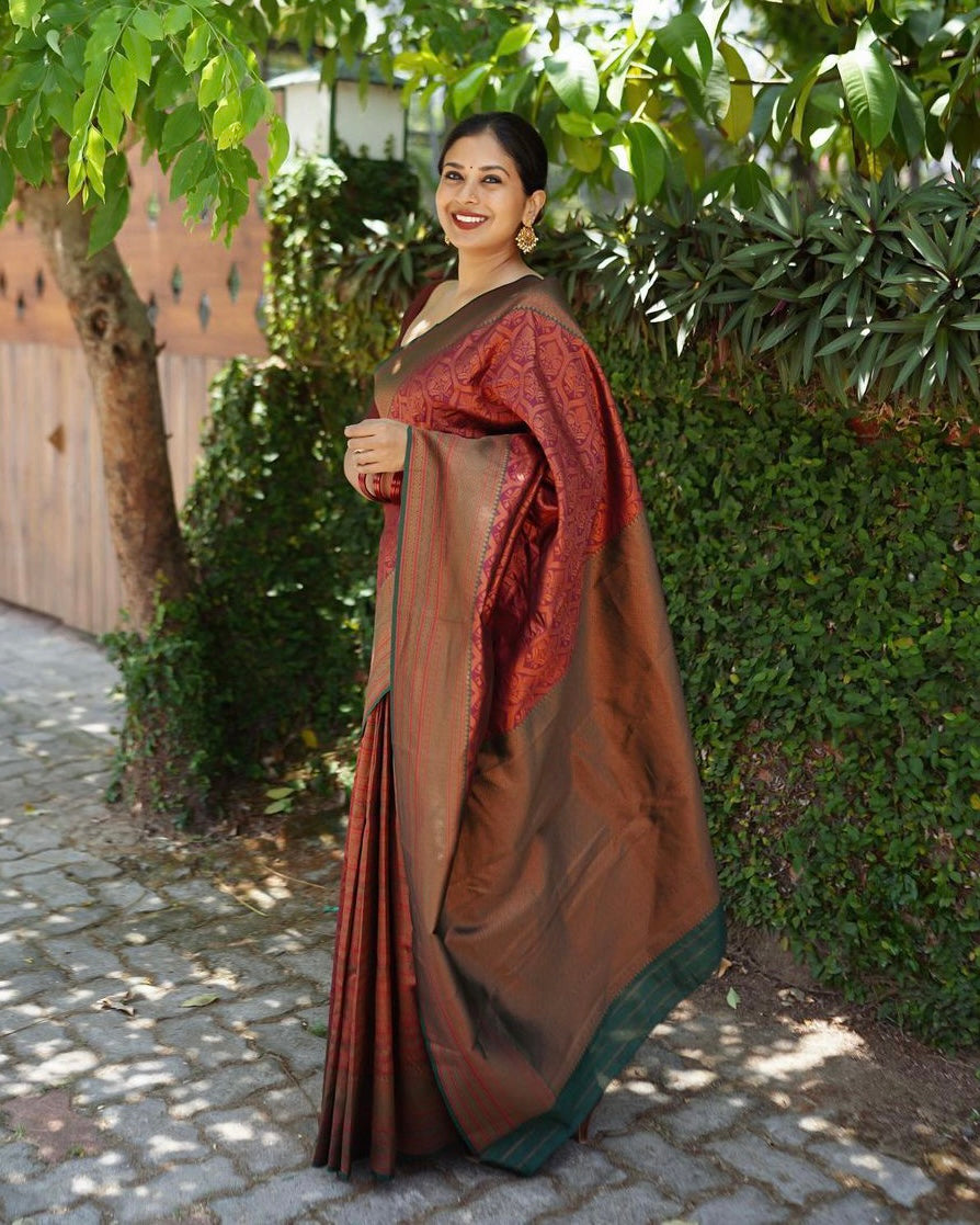 MAROON PURE SEMI SILK SAREE WEAVED WITH COPPER ZARI COMES WITH HEAVY BANARASI BROCADE BLOUSE