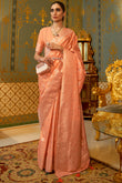 Mesmeric Peach Soft Banarasi Silk Saree With Twirling Blouse Piece