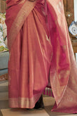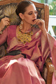 Moiety Baby Pink Soft Banarasi Silk Saree With Scintilla Blouse Piece