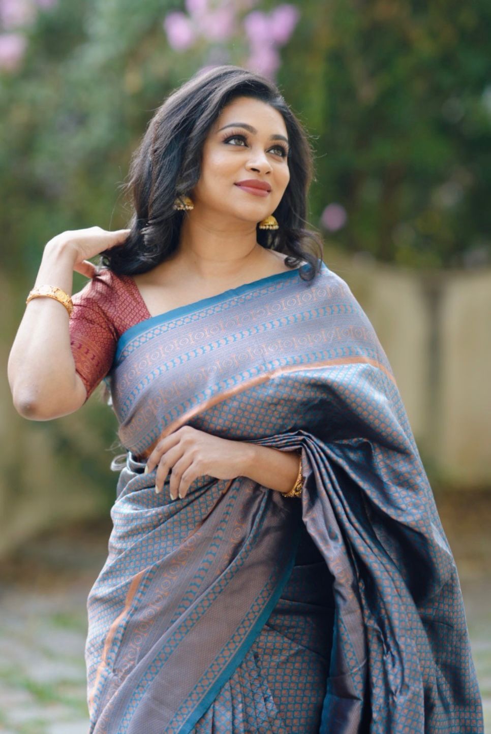 Murmurous Firozi Soft Silk Saree with Super Glittering Blouse Piece