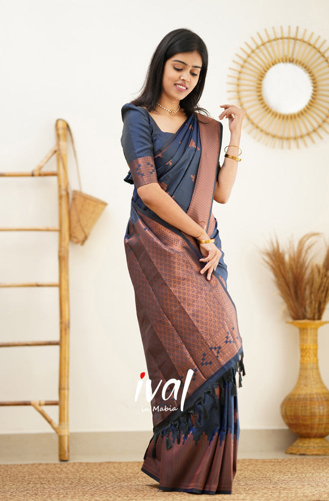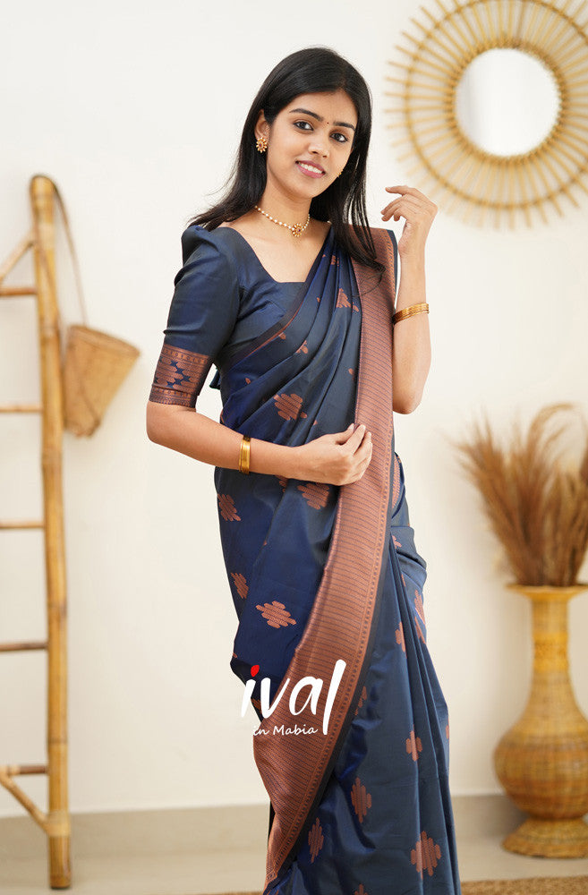 NAVY BLUE PURE SOFT SILK SAREE WITH CONFOUNDING BLOUSE PIECE