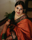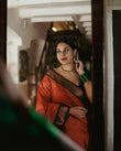 ORANGE & DARK GREEN COMBINATION PURE SOFT SEMI SILK SAREE WITH ATTRACTIVE BLOUSE PIECE