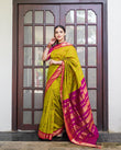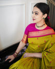 PARROT GREEN & PINK PURE SOFT SEMI SILK SAREE WITH ATTRACTIVE BLOUSE PIECE