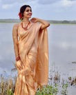PHENOMENAL LIGHT ORANGE SOFT BANARASI SILK SAREE WITH IMBRICATION BLOUSE PIECE