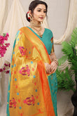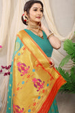 Radiant Turquoise Paithani Silk Saree With Splendorous Blouse Piece
