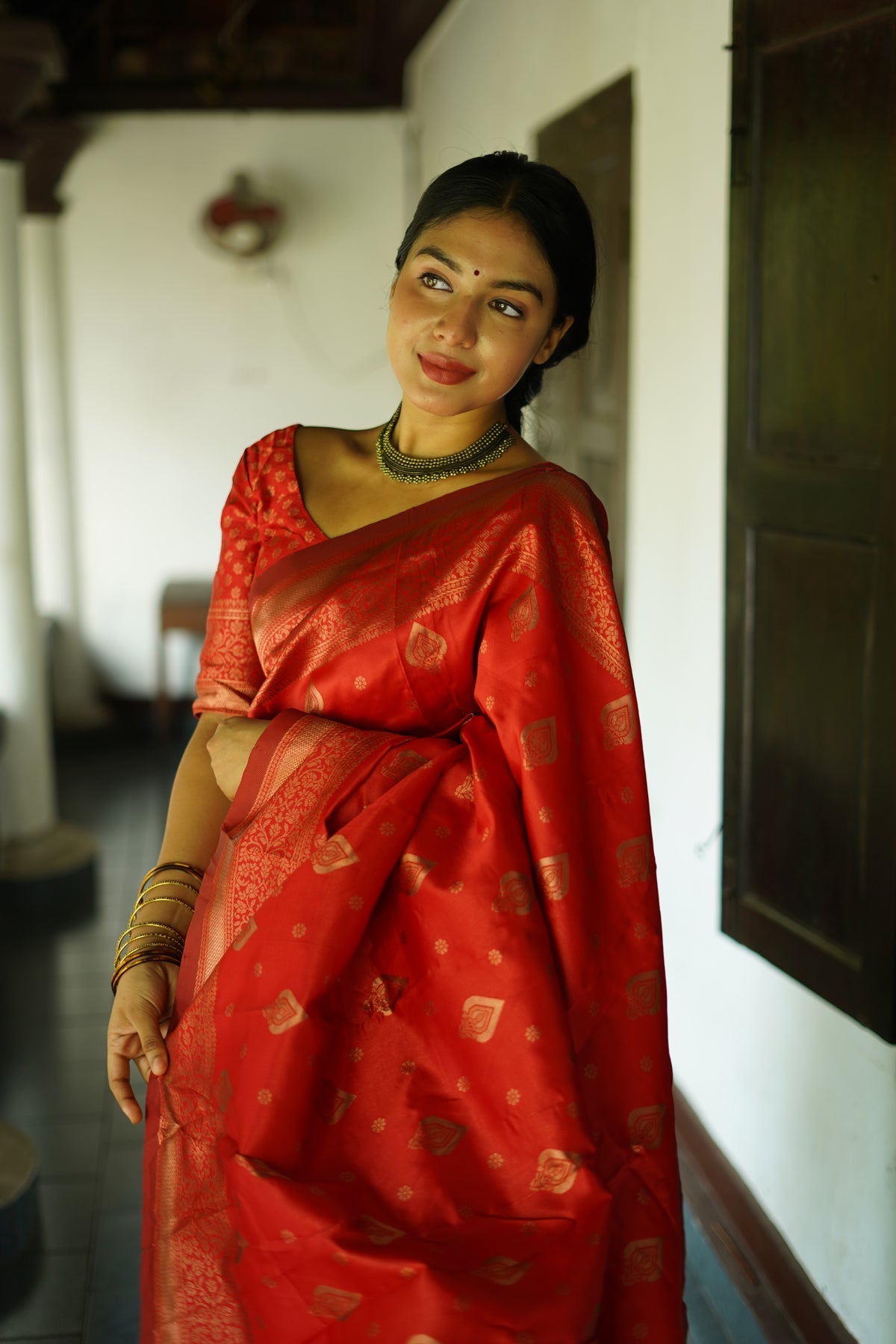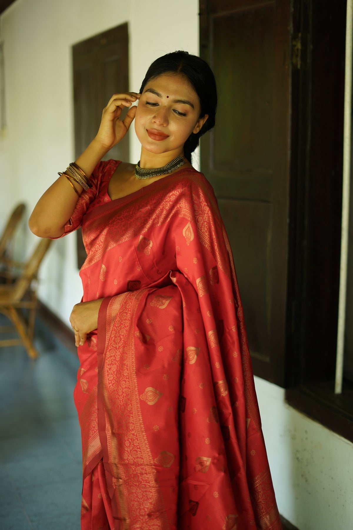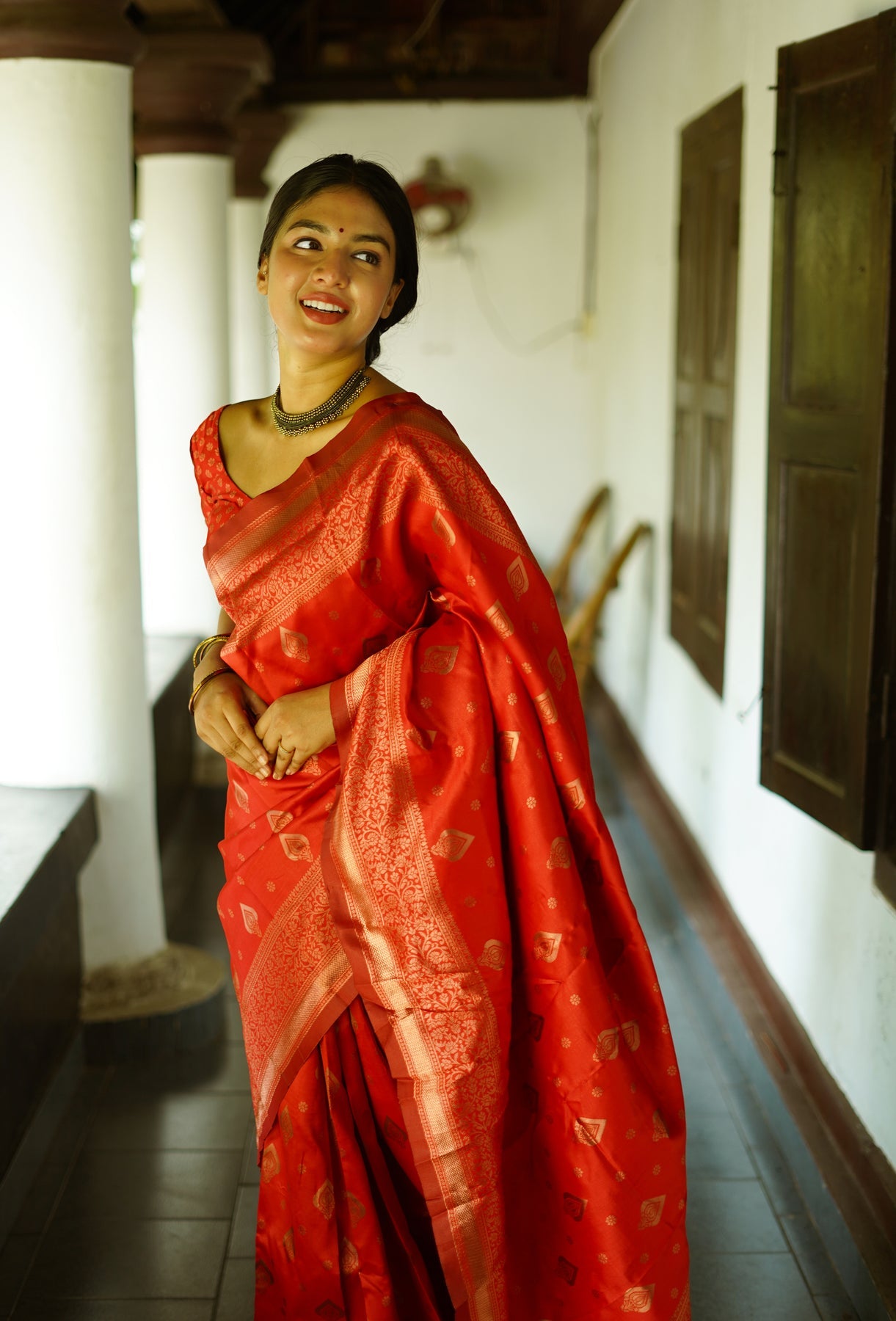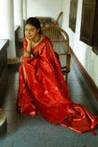 RED PURE SOFT SILK SAREE WITH TWIRLING BLOUSE PIECE