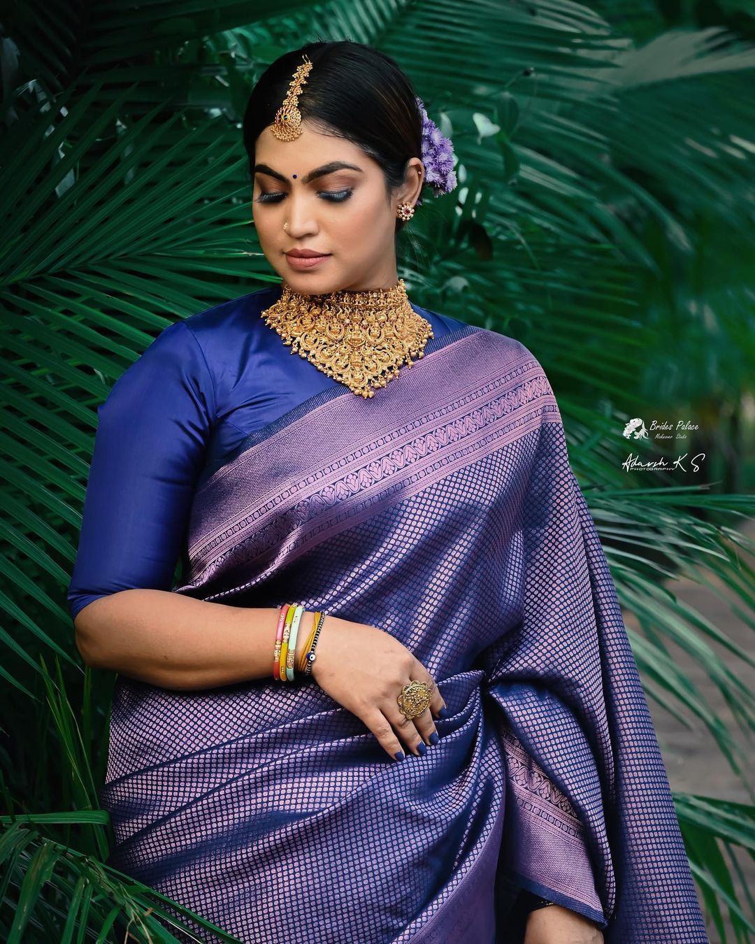 ROYAL BLUE PURE SEMI SILK SAREE.