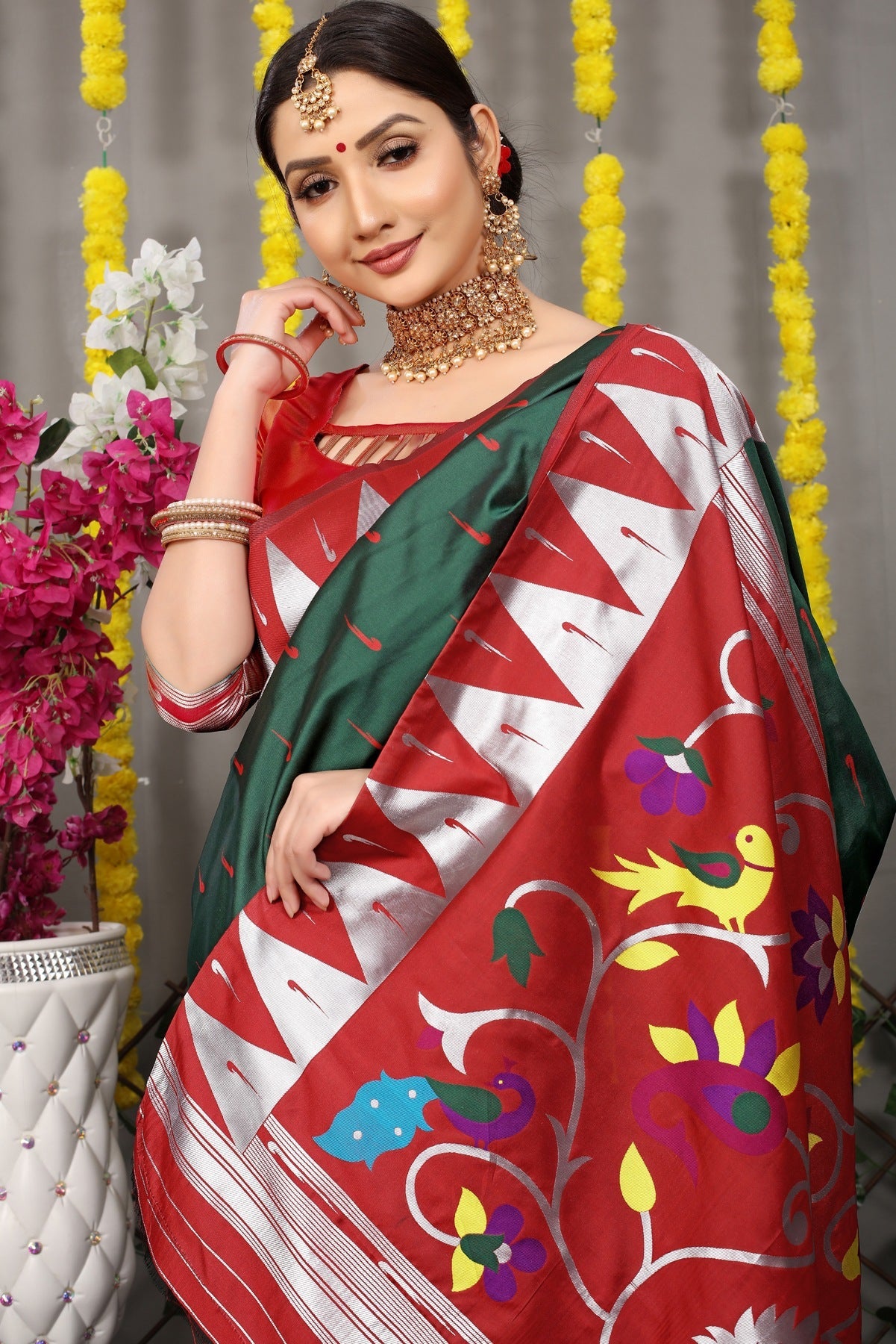 Scintilla Dark Green Paithani Silk Saree With Appealing Blouse Piece