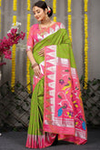 Seraglio Green Paithani Silk Saree With Appealing Blouse Piece