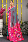 Serendipity Grey Paithani Silk Saree With Appealing Blouse Piece