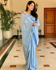 SKY PURE SOFT SILK SAREE WITH LOVELY BLOUSE PIECE