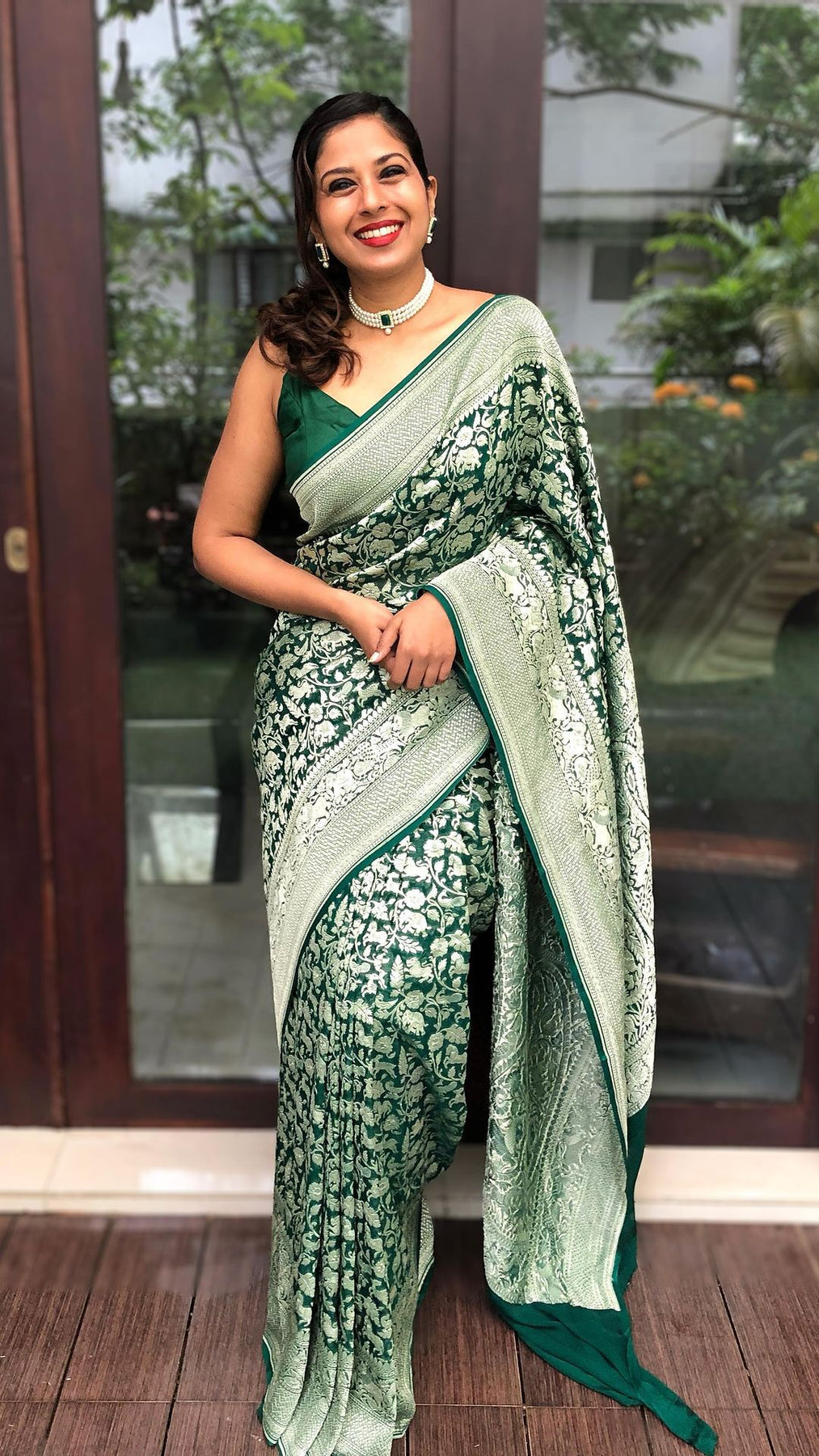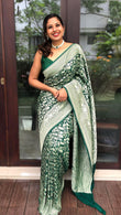 SNAZZY GREEN PURE SOFT SILK SAREE WITH CONFOUNDING BLOUSE PIECE