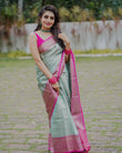 Staggering Sea Green Soft Silk Saree With Murmurous Blouse Piece