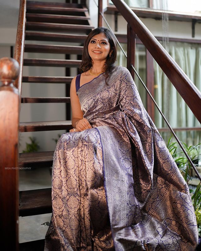 STARING BLUE PURE SOFT SILK SAREE WITH TEMPTING BLOUSE PIECE