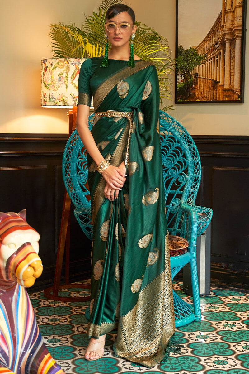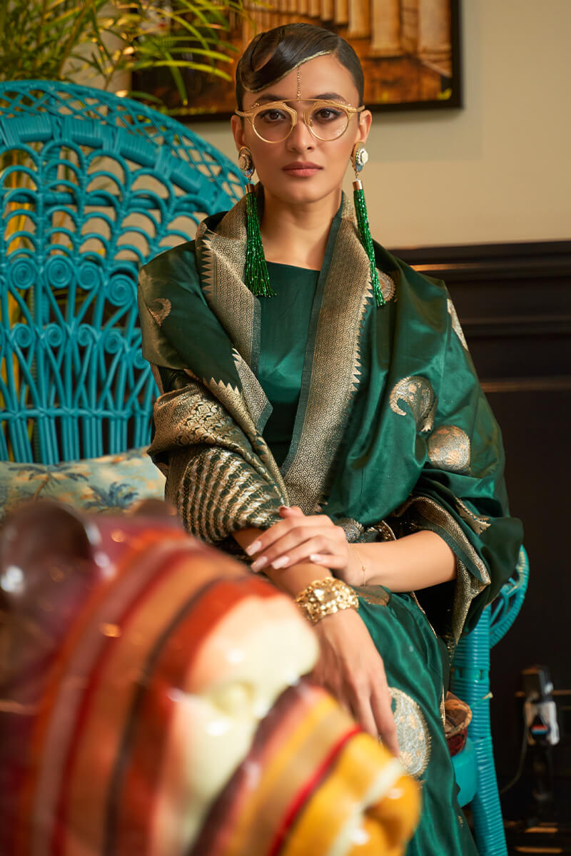 Staring Dark Green Soft Banarasi Silk Saree With Appealing Blouse Piece