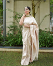 STARING OFF WHITE PURE SOFT SILK SAREE WITH TEMPTING BLOUSE PIECE