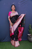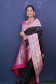 Surpassing Black Paithani Silk Saree With Classy Blouse Piece