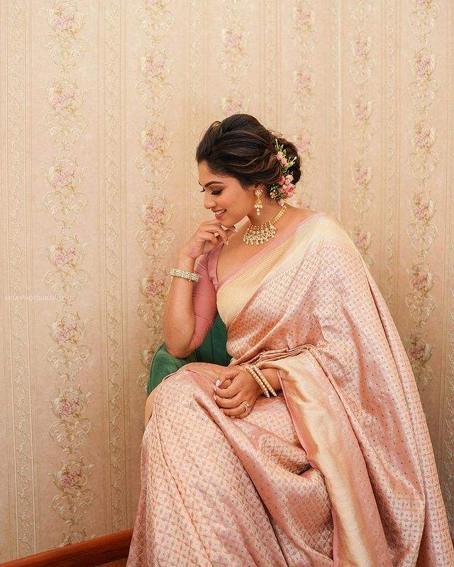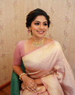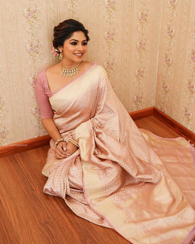 SYMMETRICAL BABY PINK PURE SOFT SILK SAREE WITH ENGROSSING BLOUSE PIECE