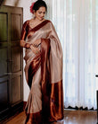 SYMMETRICAL GREY PURE SOFT SILK SAREE WITH ENGROSSING BLOUSE PIECE