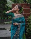 TEAL BLUE PURE SOFT SEMI-SILK SAREE STYLISH BLOUSE PIECE
