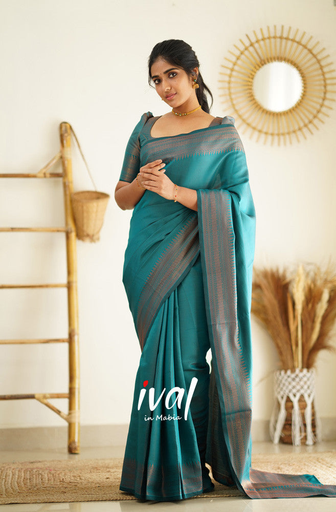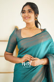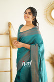 TEAL BLUE PURE SOFT SEMI SILK SAREE WITH LOVELY BLOUSE PIECE