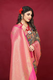 Indulge in the opulence of Soft Silk Saree, exquisitely designed with the elegant blend of traditional Golden Zari weaving and contemporary Kalamkari digital print. Made from the finest quality silk, this luxurious saree drapes effortlessly on your body, making you look and feel regal. Embrace the crown of grandeur and extravagance with this luxurious piece of art.