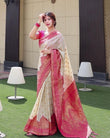 Traditional Beige Soft Silk Saree With Divine Blouse Piece