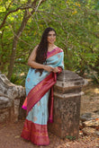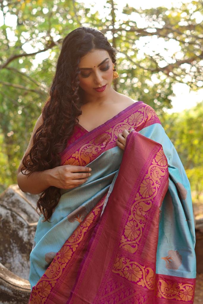 Unique Sky Soft Banarasi Silk Saree With Impressive Blouse Piece