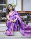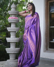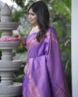 VIOLET SEMI SILK SAREE WEAVED WITH COPPER ZARI WITH ATTACHED HEAVY BROCADE BLOUSE