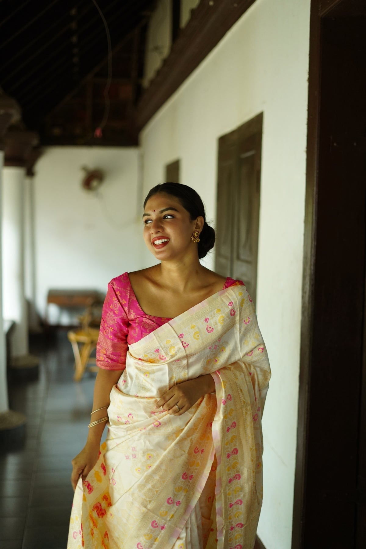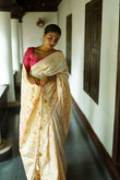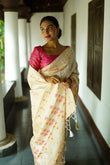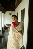 WHITE PURE SOFT SILK SAREE WITH TWIRLING BLOUSE PIECE